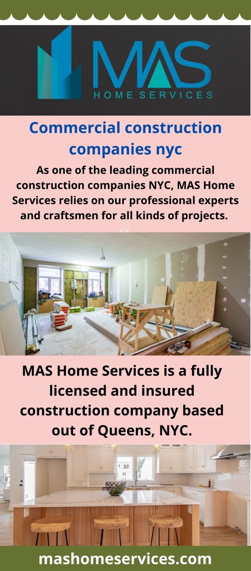 As one of the leading commercial construction companies NYC, MAS Home Services relies on our professional experts and craftsmen for projects. Reach out to us for your project needs.